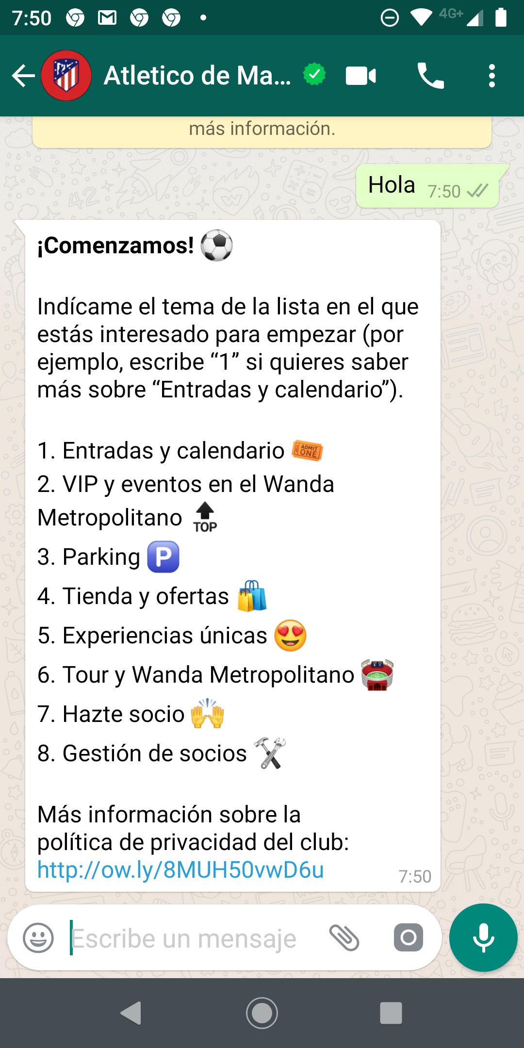 Este servicio está disponible en varios idiomas. Por ejemplo, el Atlético de Madrid ha lanzado el servicio en castellano e inglés.