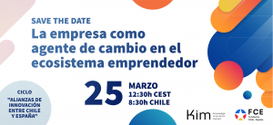 Empresa&Sociedad participó en el webinar “La empresa como agente de cambio en el ecosistema emprendedor», organizado por Fundación Chile-España (FCE) en colaboración con KIM, Knowdle Innovation Market. Se enmarca en el reciente Acuerdo de Colaboración firmado con FCE para realizar y difundir encuentros como seminarios, jornadas, congresos o coloquios para fomentar alianzas de innovación entre Chile y España.